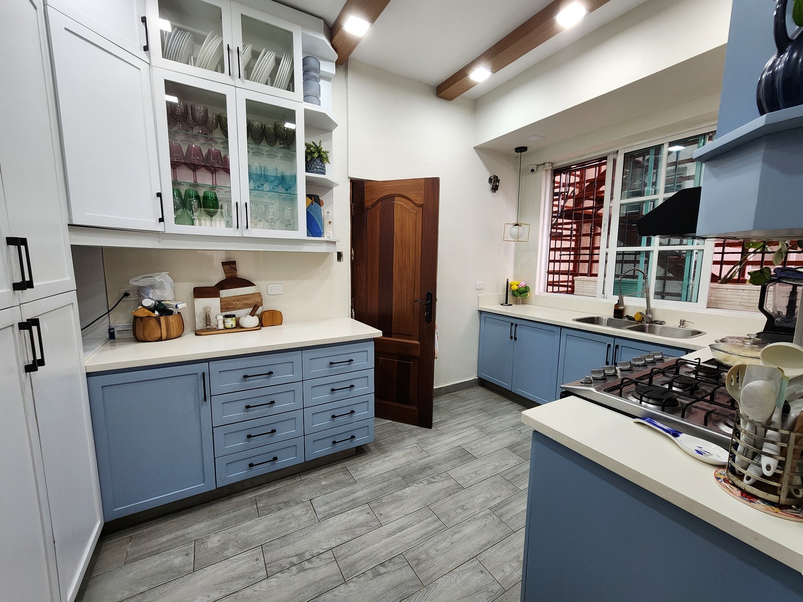 Cocina: Diseño modular con resistentes topes de granito.